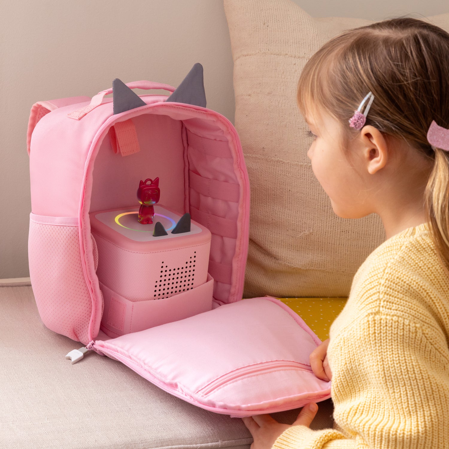 Pink Tonies Adventure Backpack, the perfect travel buddy for little explorers. With plenty of space to carry their Toniebox, Tonies, headphones, charger, and more, kids can bring their favourite stories and songs. Designed just for kids, this backpack is lightweight, durable, and ready for adventure big or small!